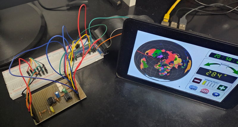 A l’origine du projet, le but n’était pas de construire un pupitre, mais juste une interface similaire à la GS-232B (qui coute presque plus cher que le rotor lui meme …). Comme j’ai de plus en plus de mal à imaginer des trucs qui ne sont pas connectable d’une manière ou une autre en reseau IP, j’etais parti sur un ESP32 puis je me suis dit qu’un truc sur un petit écran tactile, cela pouvait être rigolo et faire bien frimeur dans la station😎. Finalement, j’ai décidé de faire d’une pierre 2 coups. Un pupitre doté d’une interface graphique tactile qui héberge une emulation GS-232B.