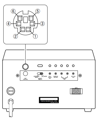 Tout comme l’interface GS-232B, RoTorD utilise le connecteur ‘EXT’ qui se troune sur la face arrière du pupitre Yaesu. C’est un connecteur femelle mini-din 6 broches cablé comme suit :
